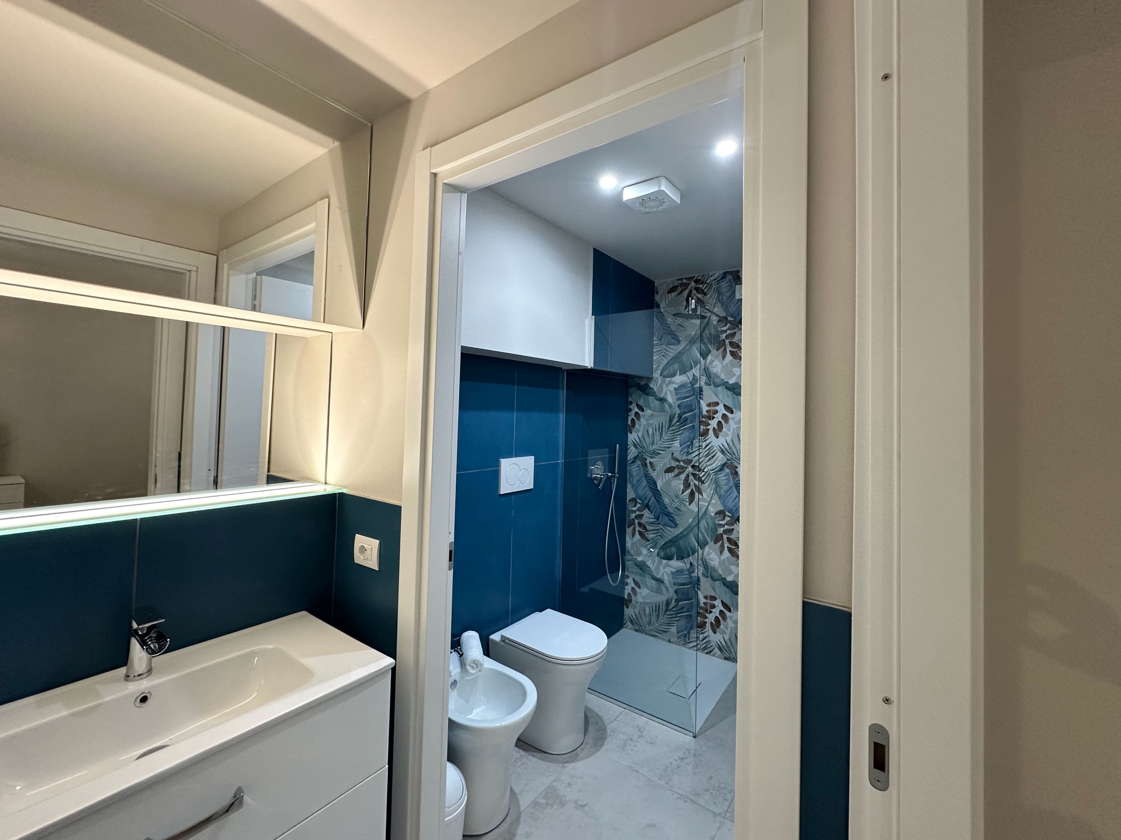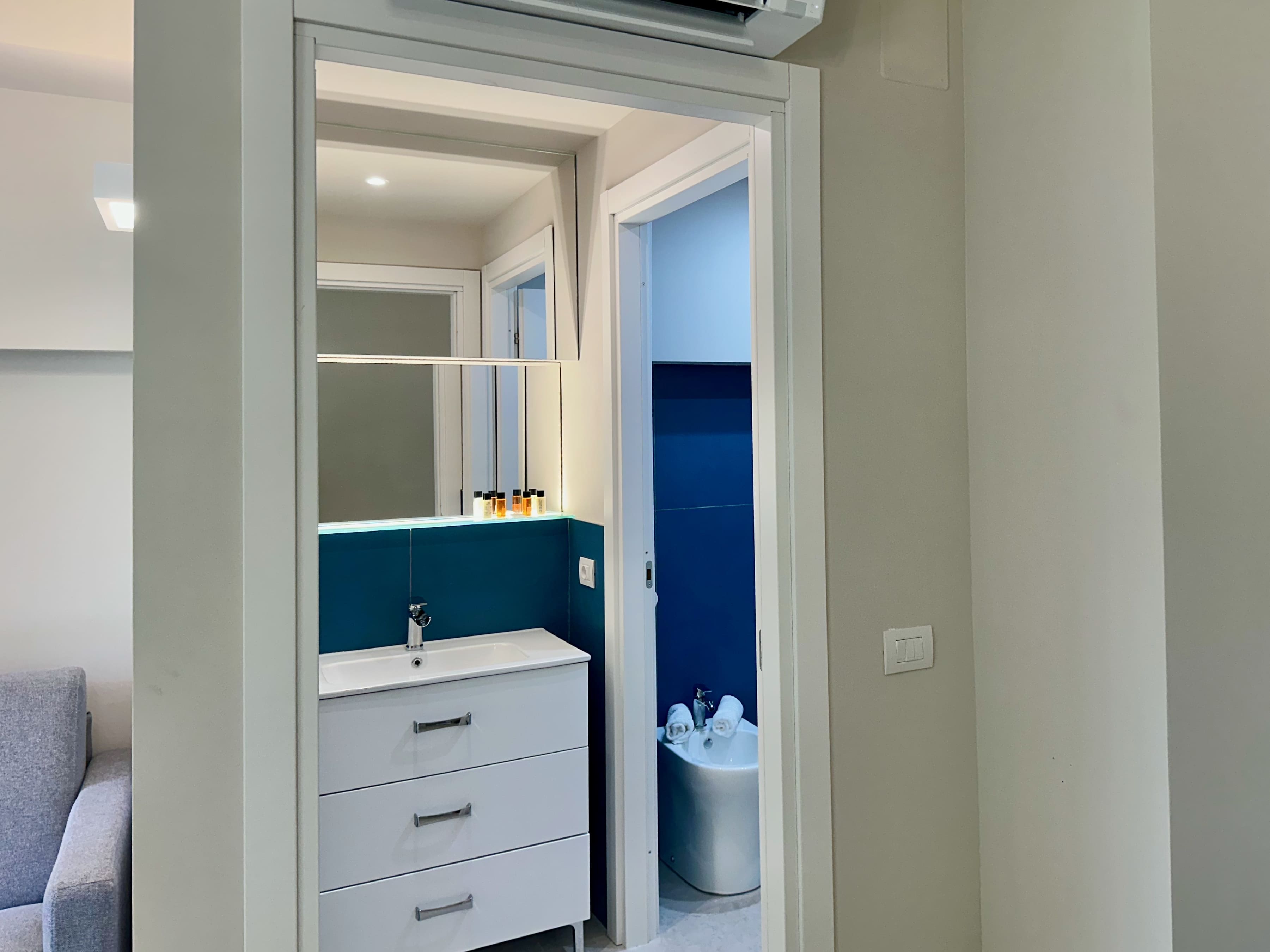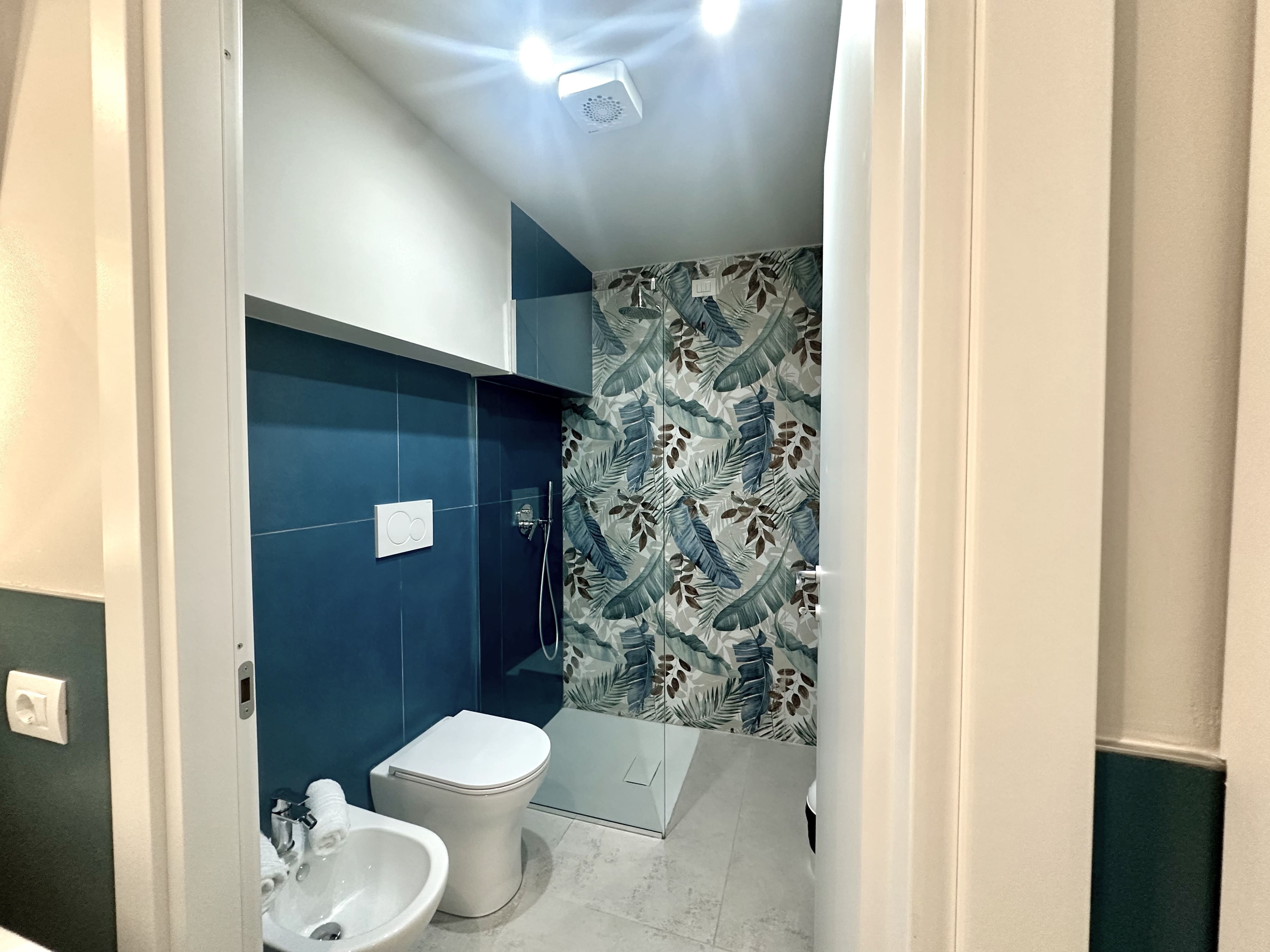 The bathroom, with a shower in the anteroom, is equipped with disabled-accessible toilets.
