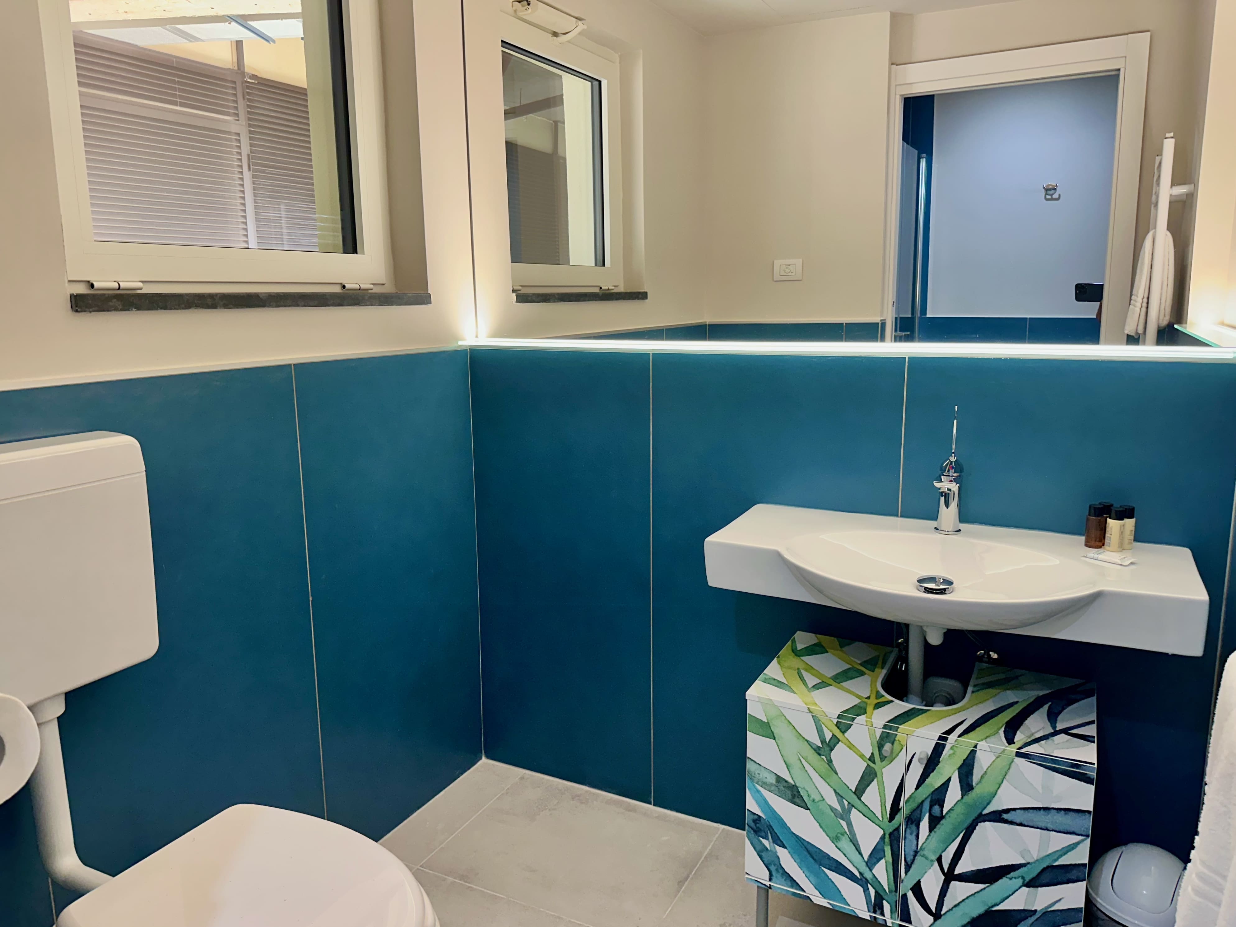 The bathroom, with a shower in the anteroom, is equipped with disabled-accessible toilets.