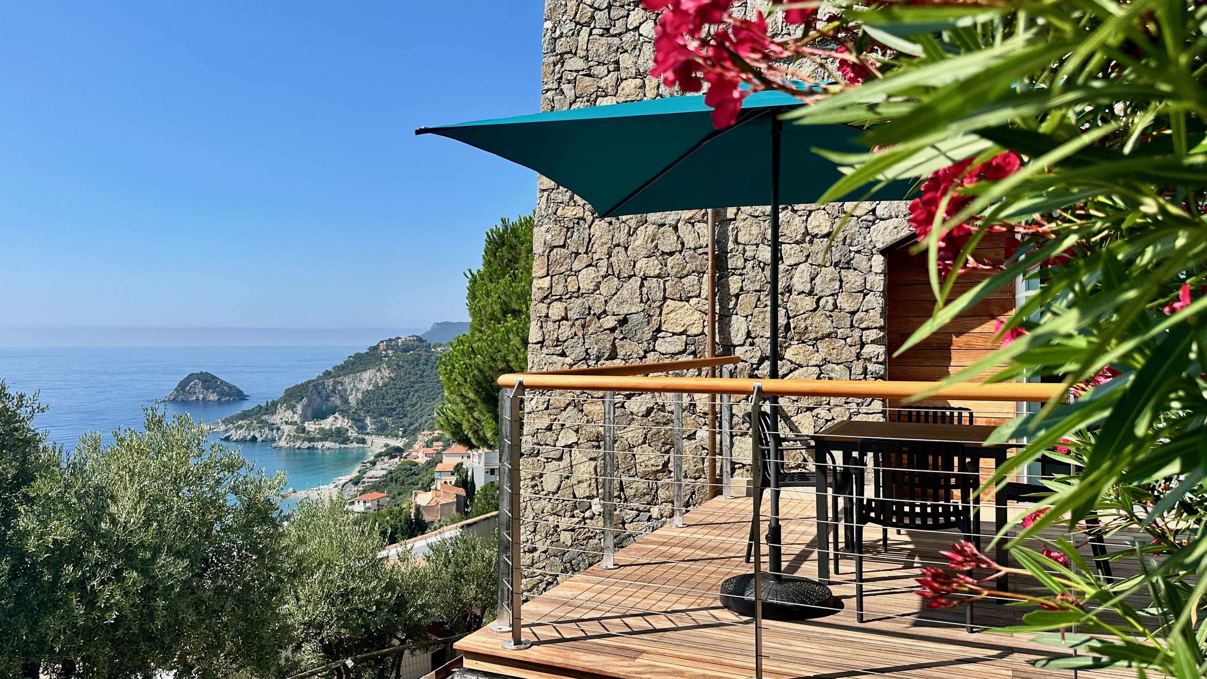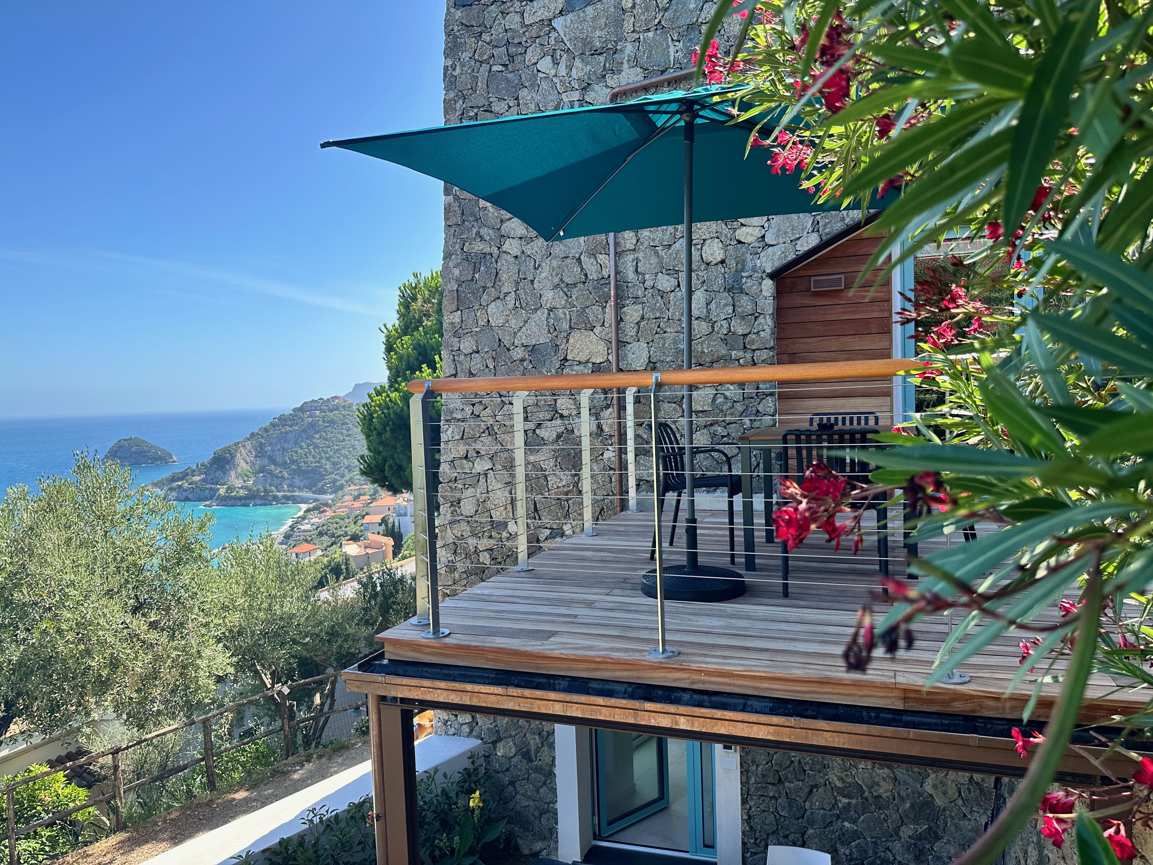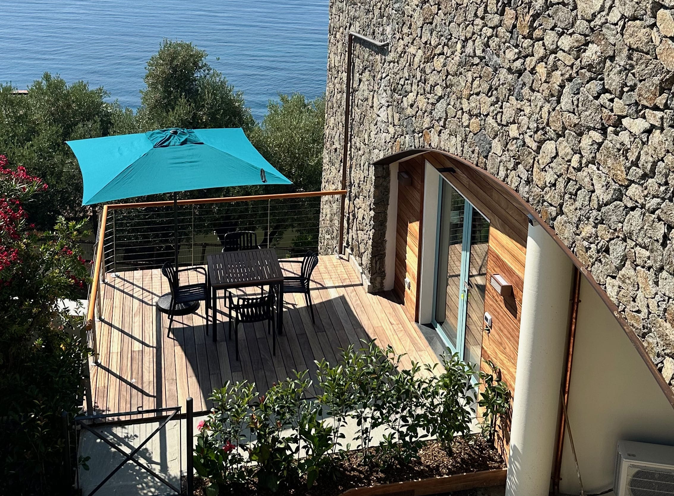 The apartment features a large terrace with sea views.