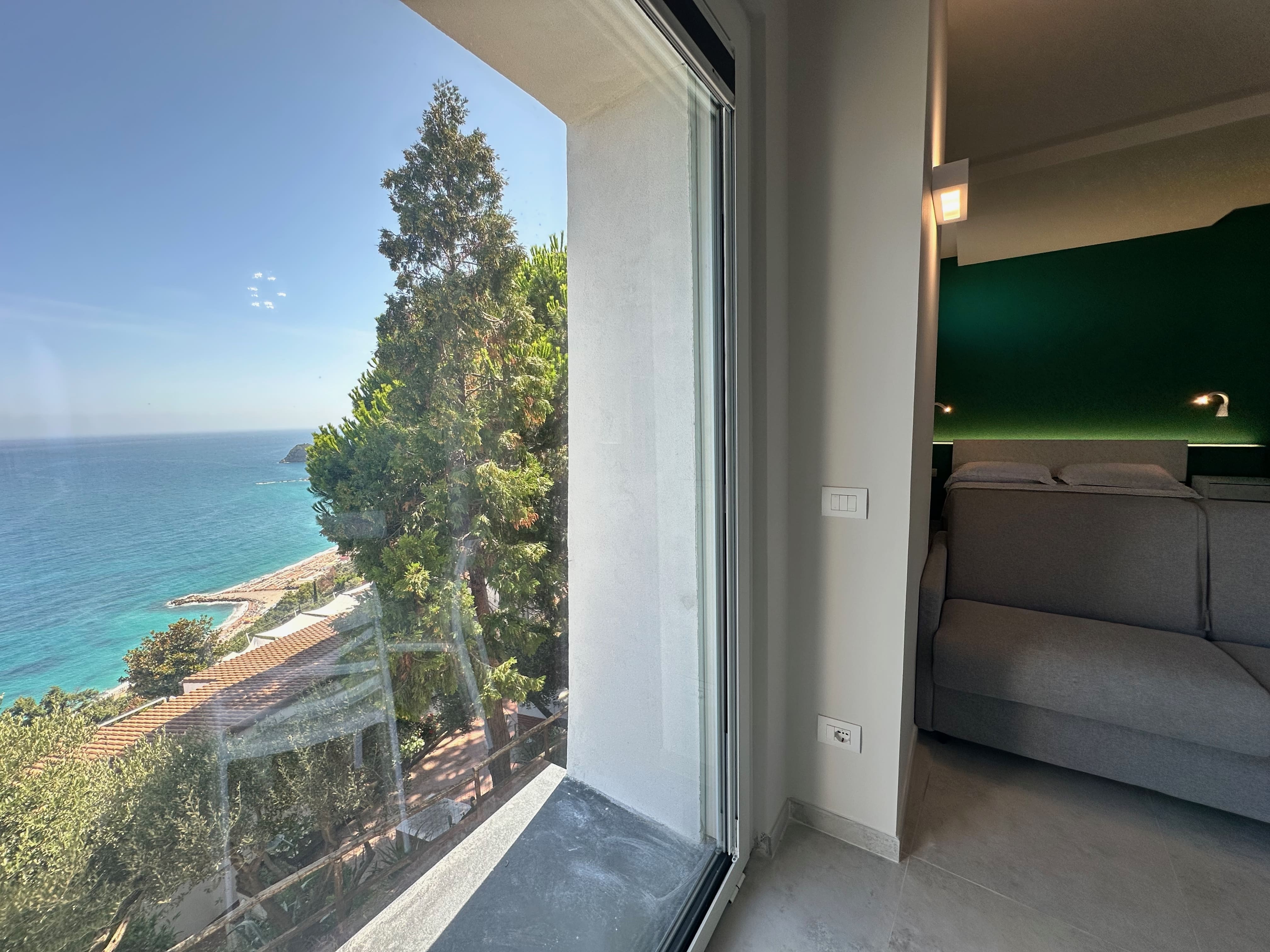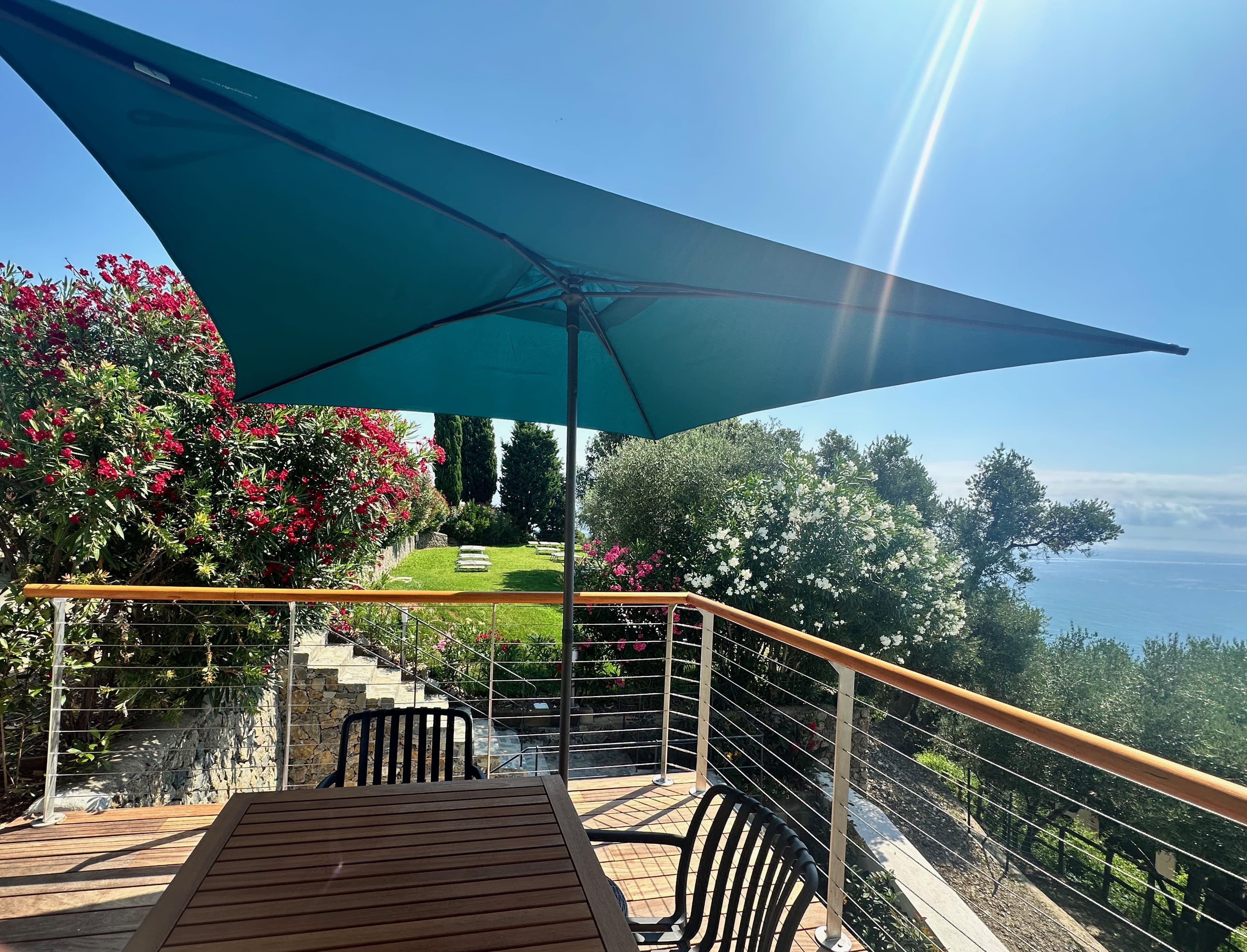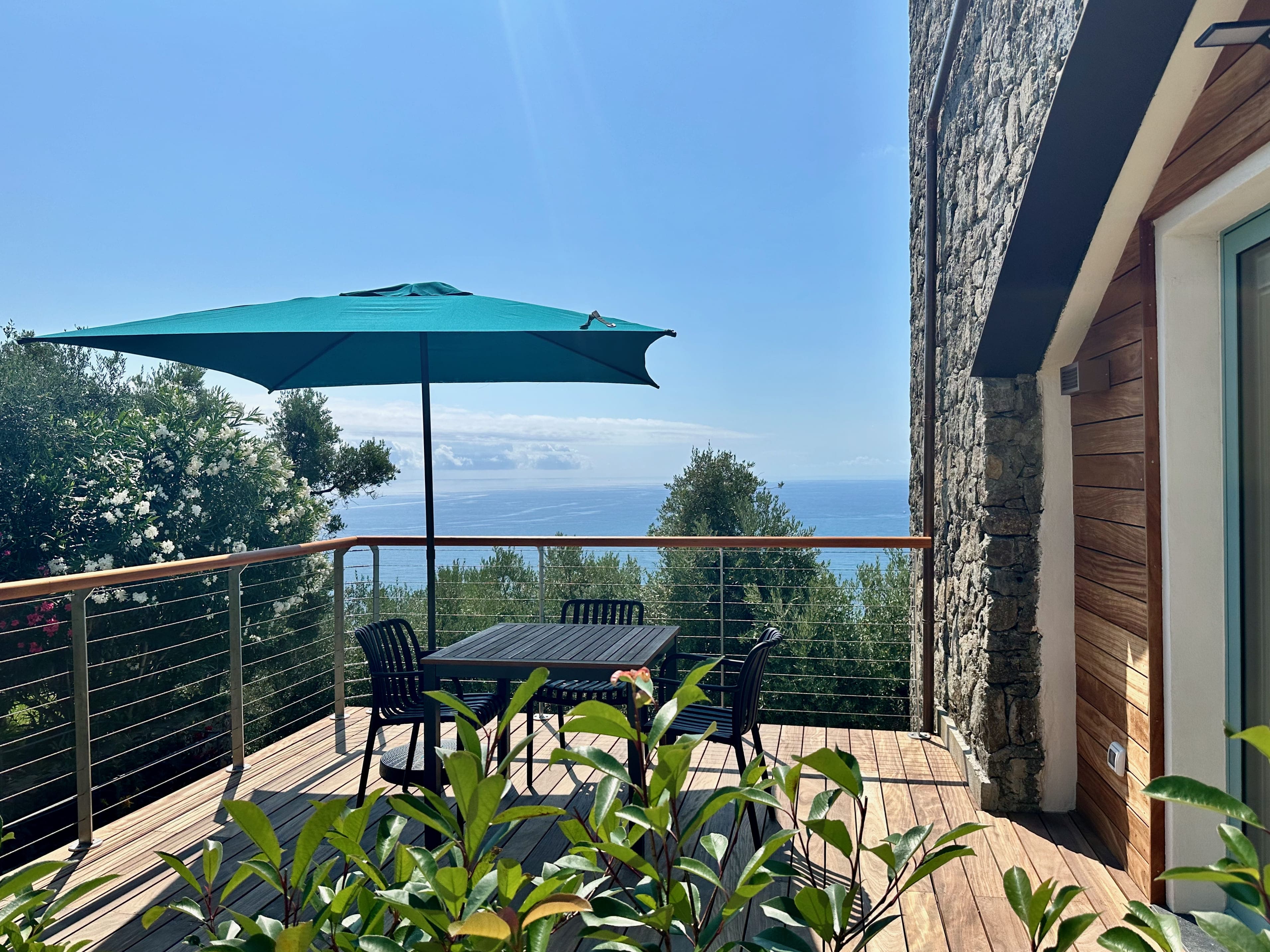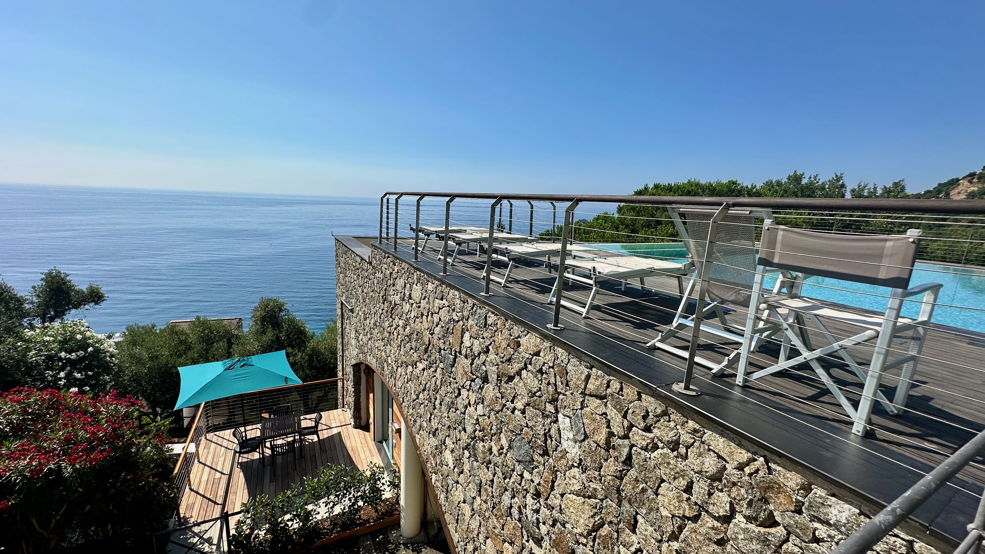 The apartment features a large terrace with sea views.