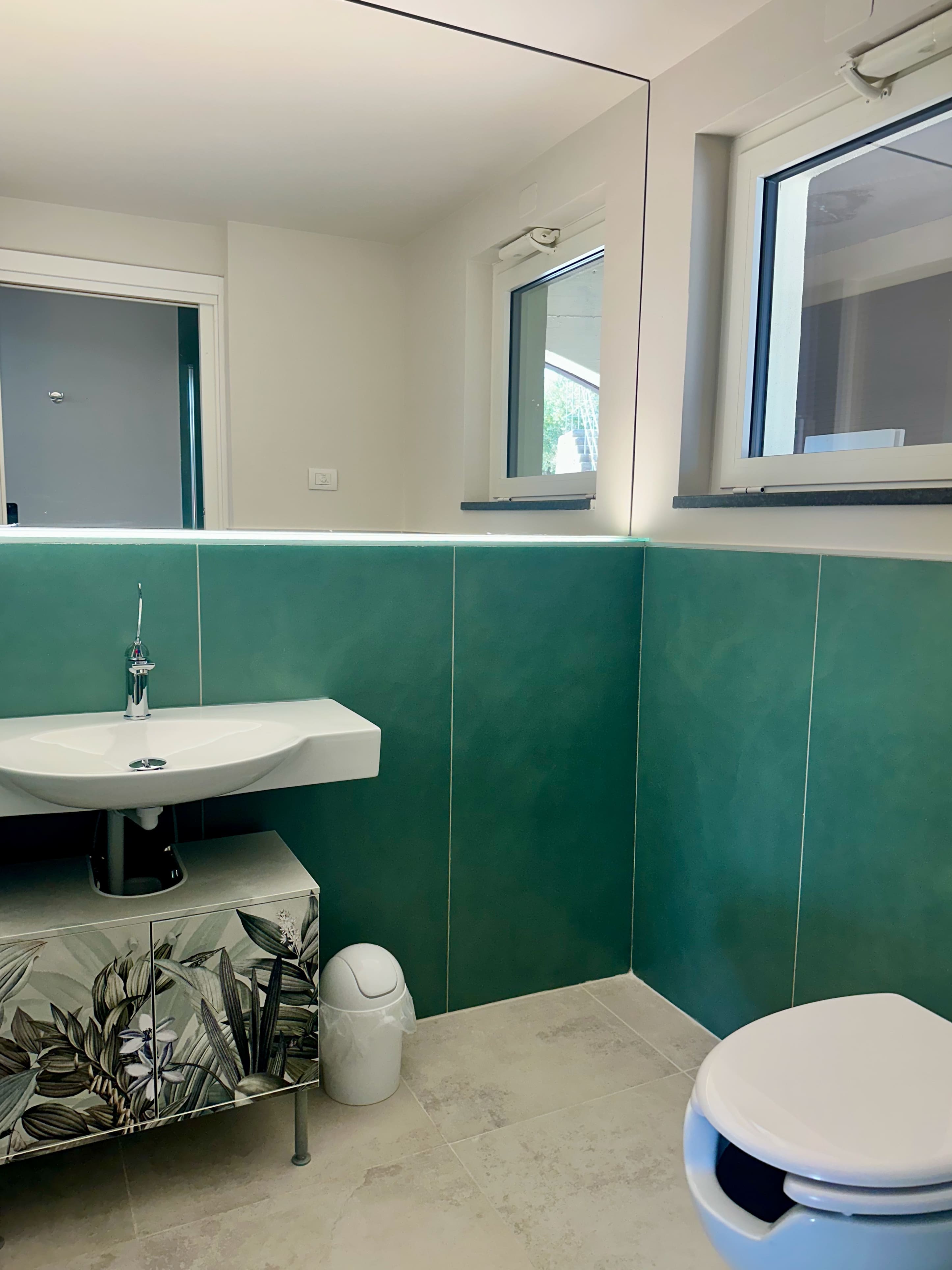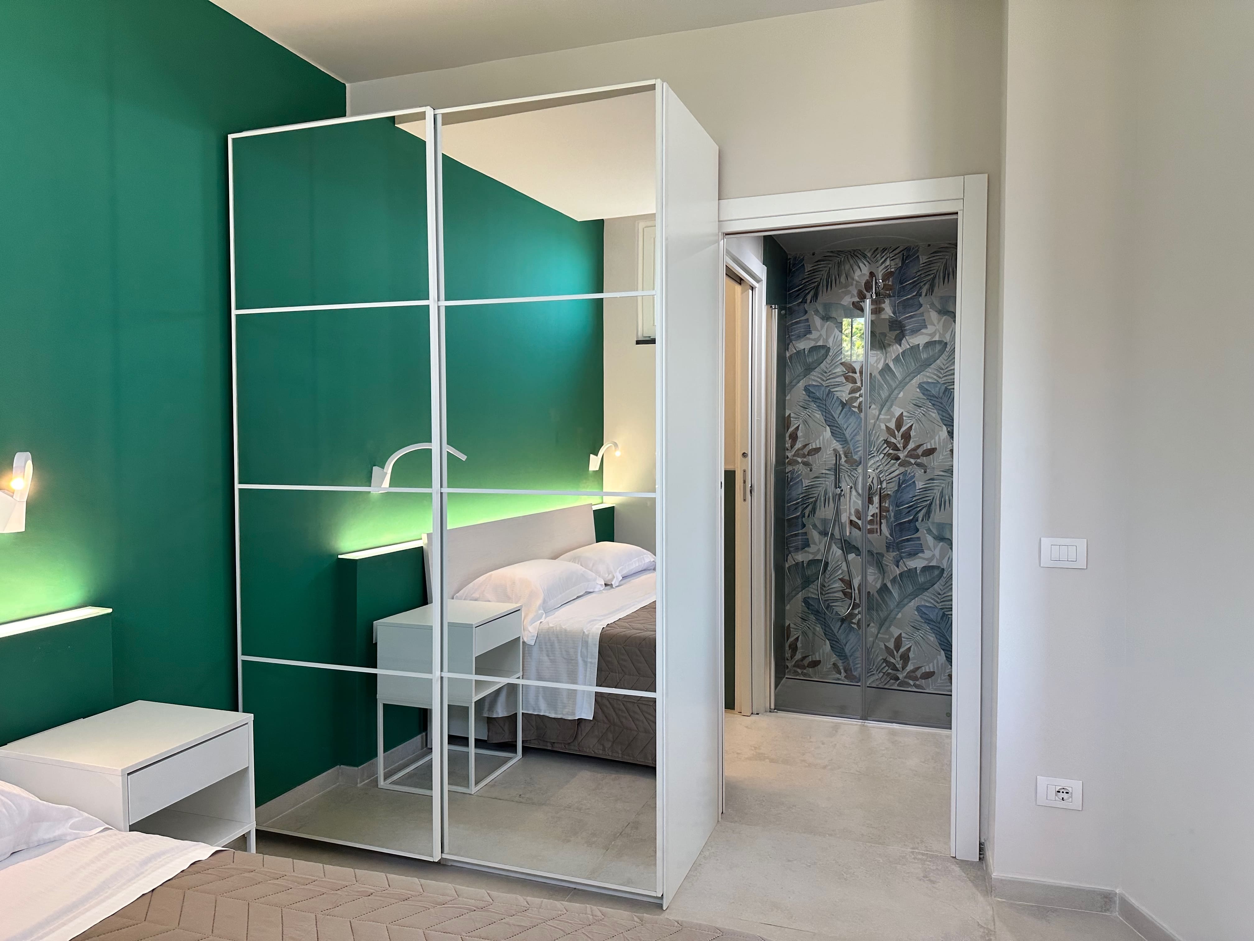 The bathroom, with a shower in the anteroom, is equipped with disabled-accessible toilets.